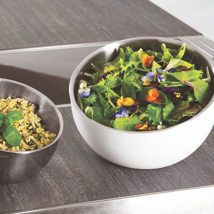 ■ダブルウォール(二重構造)は保冷効果に優れて、サラダ、フルーツ等のおいしい冷たさを長時間保ちます。